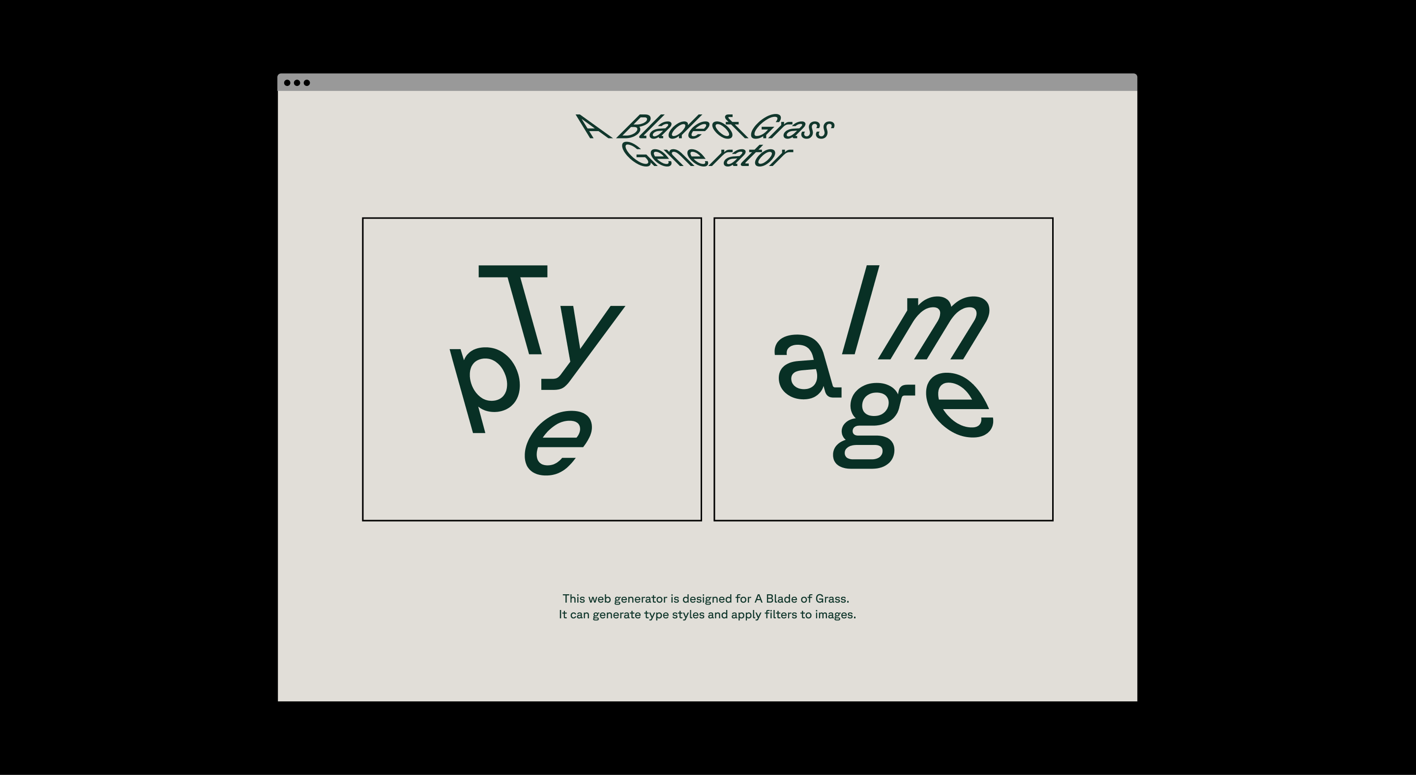Following the launch of A Blade of Grass’s new visual identity and website, new stylistic requirements emerged for typography and imagery. We created a generator to systematize these needs—producing on-brand visuals that are consistent, flexible, and easy to scale.