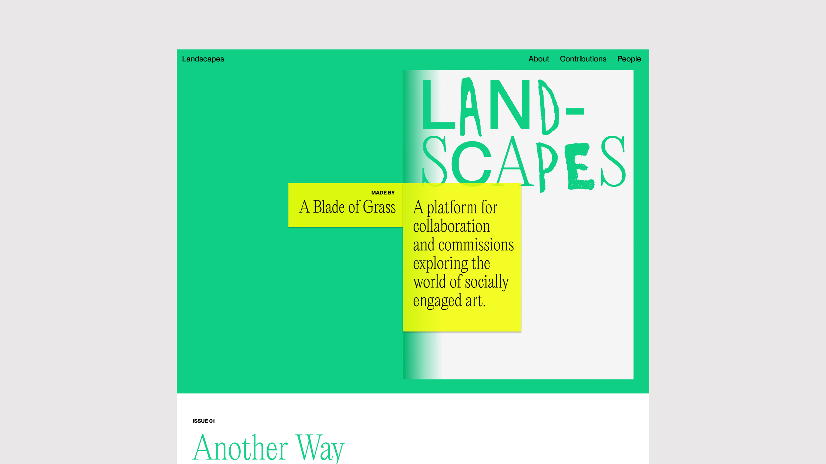 Artist-led nonprofit A Blade of Grass just launched their publication, Landscapes, which serves as a platform for collaboration and commissions exploring the world of socially engaged art.