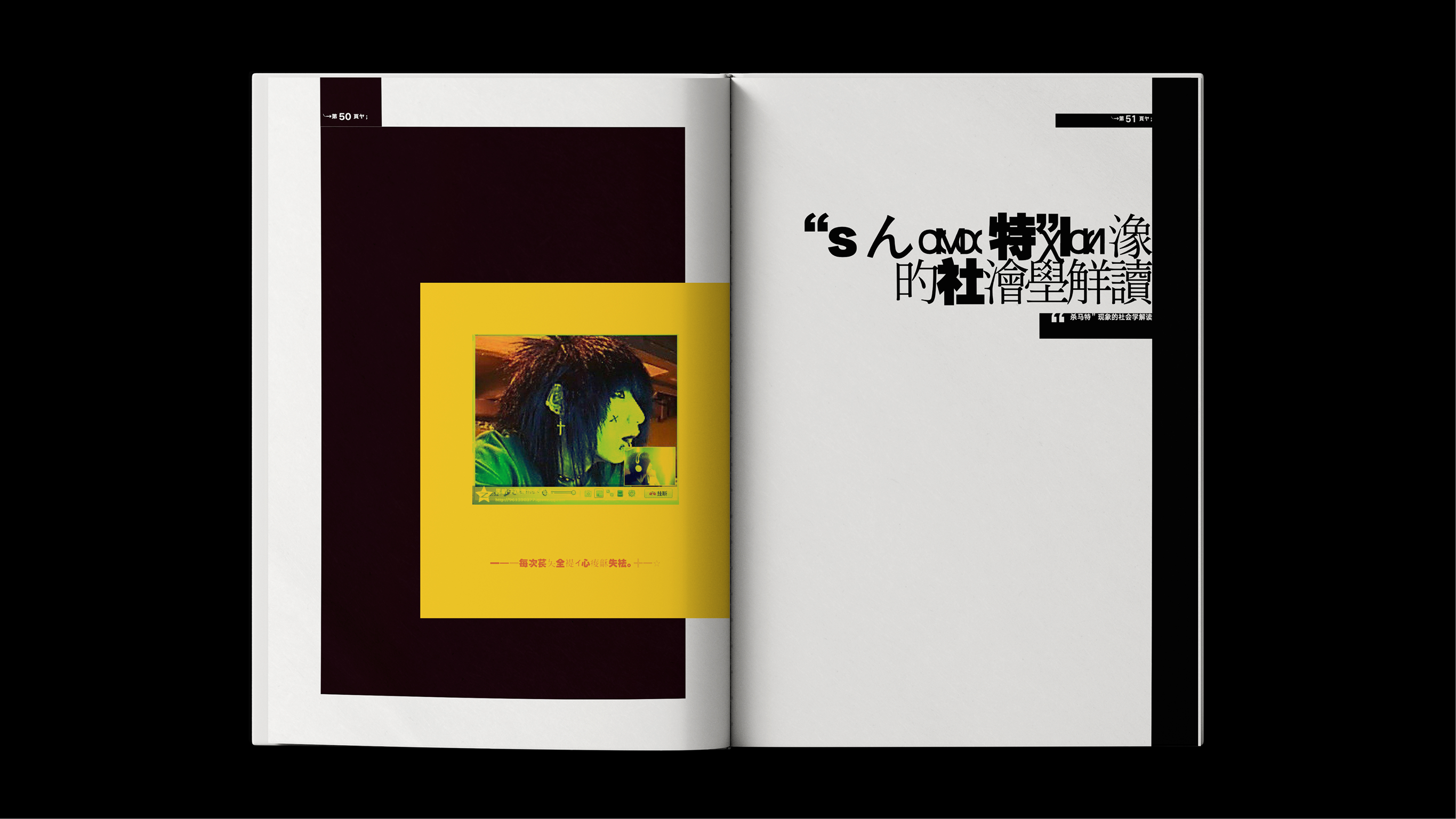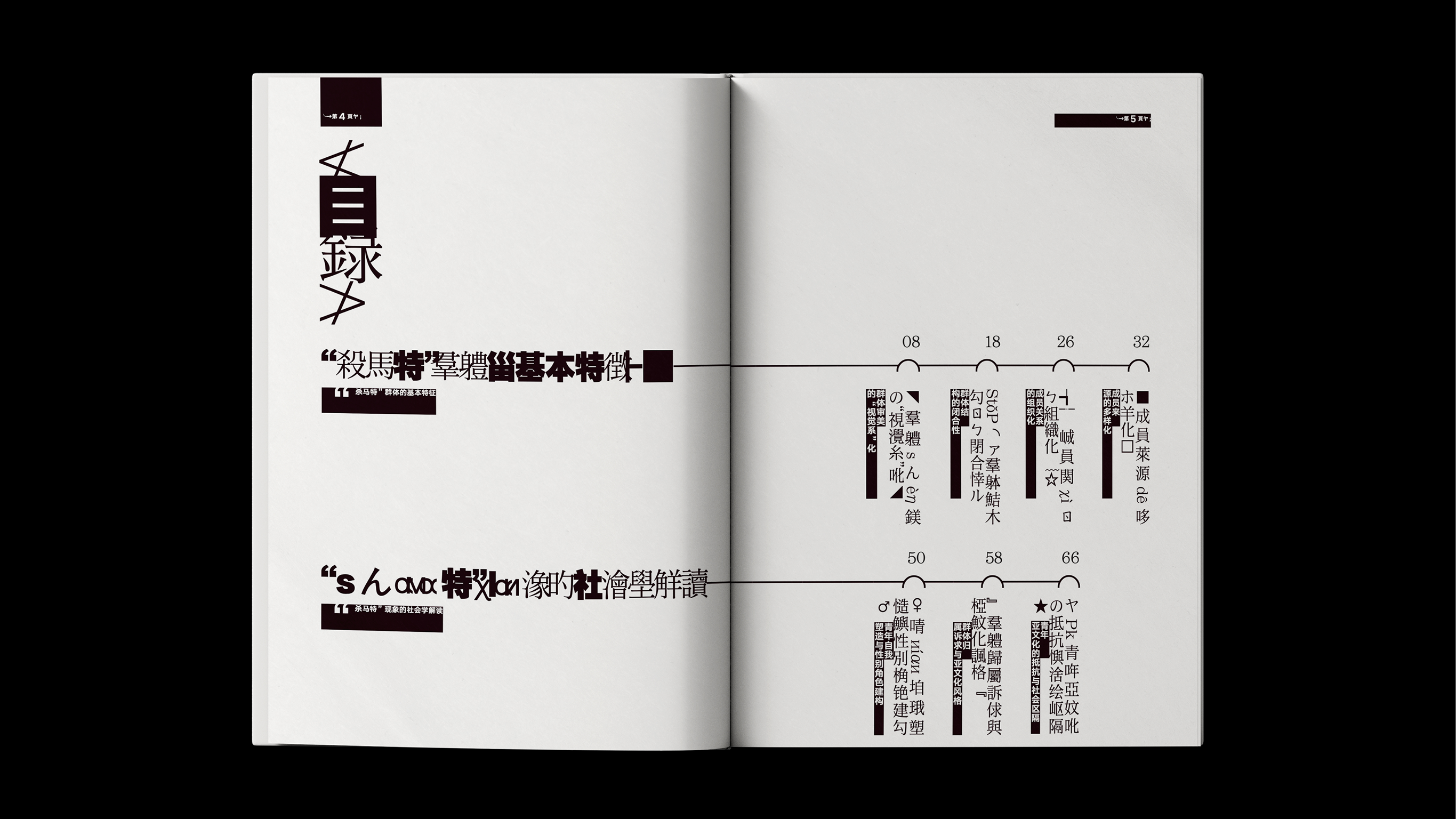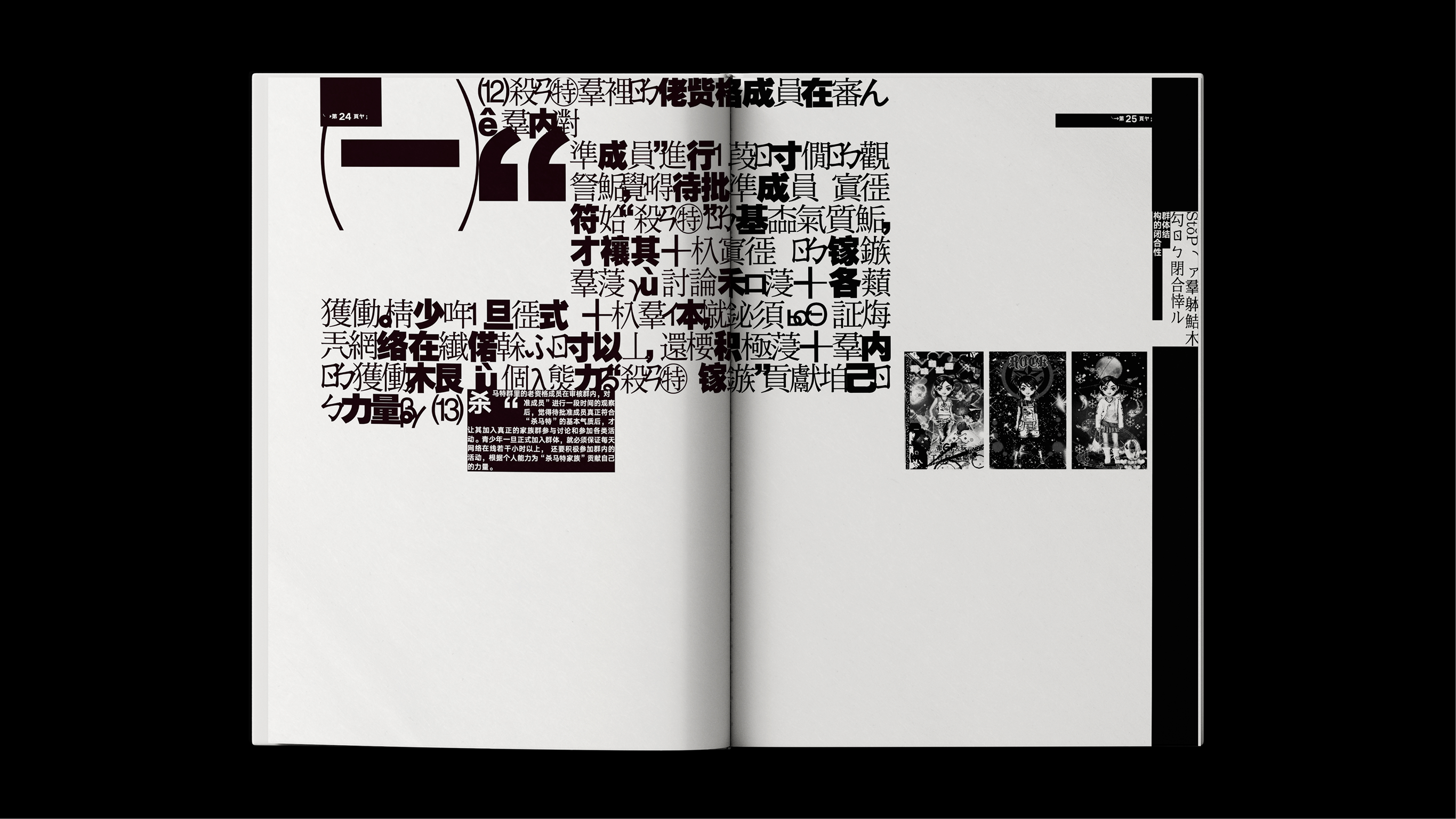 This book uses “illegibility” as a design strategy, combining Martian script (火星文) and non-grid layouts to disrupt conventional reading. The text becomes difficult to read, turning “not understanding” into an experience. Through visual noise and overload, the work challenges ideas of clarity in design and reflects how this subculture has long been misread or erased.